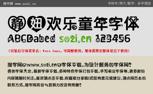 搜字網(wǎng)所有字體源于網(wǎng)絡(luò)分享,免費(fèi)供大家學(xué)習(xí)交流。除有廠商申明可免費(fèi)商用以外,都僅限個(gè)人非商業(yè)使用。未獲字體開發(fā)方商用授權(quán)的,嚴(yán)禁擅自商用,因此造成的侵權(quán)責(zé)任須自行承擔(dān)。本站不承擔(dān)任何版權(quán)責(zé)任和糾紛,本站出于愛好而建,善意免費(fèi)為各類字體開發(fā)者宣傳推廣,您認(rèn)為有任何不妥之處,請(qǐng)與我們聯(lián)系,將會(huì)第一時(shí)間給您答復(fù)!