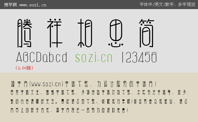 搜字網(wǎng)給大家提供一款騰祥相思簡體卡通中文字體下載。騰祥相思簡是一款應(yīng)用于藝術(shù)設(shè)計方面的中文簡體漢字,該字體筆畫纖細精致、簡潔清晰,每個字風(fēng)格統(tǒng)一,可應(yīng)用于平面設(shè)計、出版印刷、廣告設(shè)計、包裝設(shè)計等領(lǐng)域。